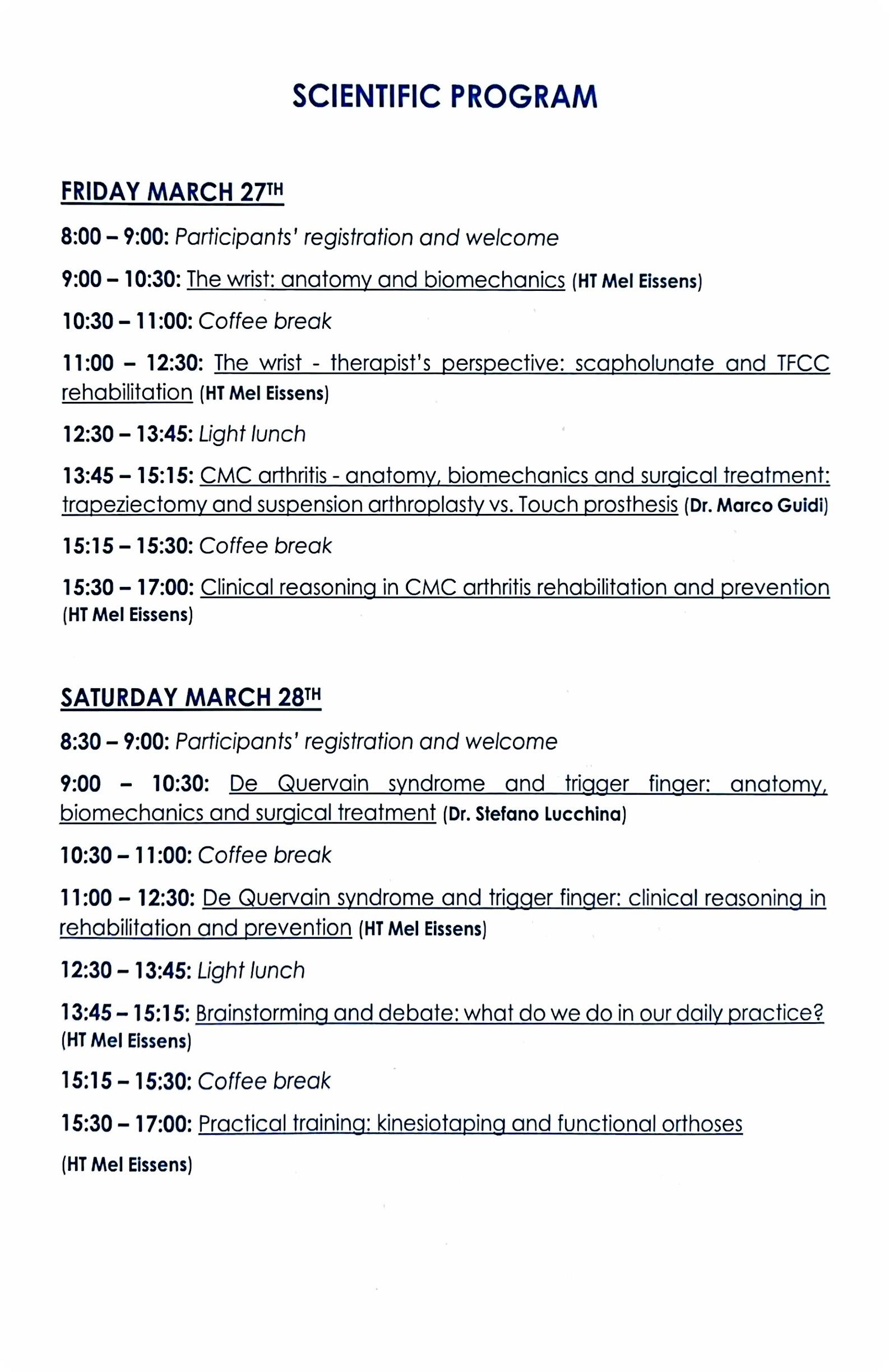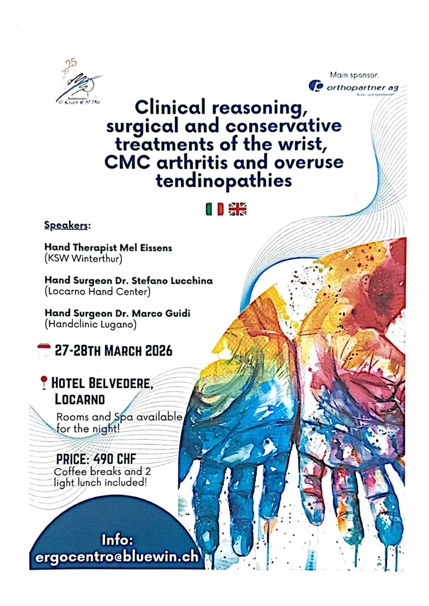 27. - 28.3.2026 I Clinical reasoning, surgical and conservative treatments of the wrist, CMC arthritis and overuse tendinopathies (Réalisation par des prestataires tiers)